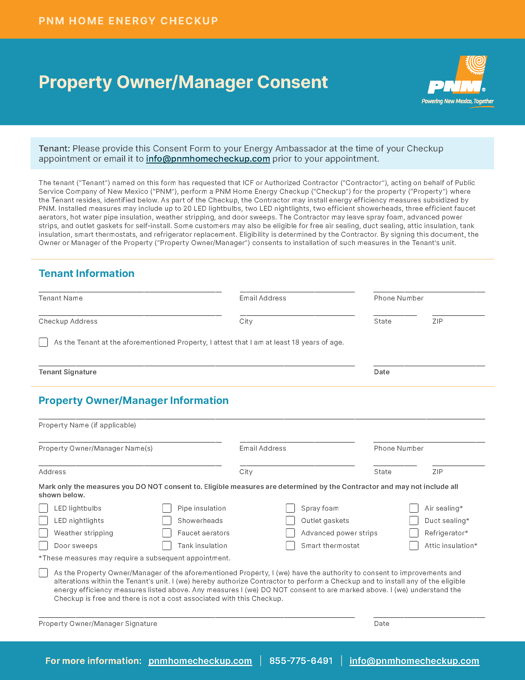 Choose an in‑home or virtual Home Energy Checkup at a time that works for you. You’ll need your PNM account number and some basic information about your home, such as square footage.